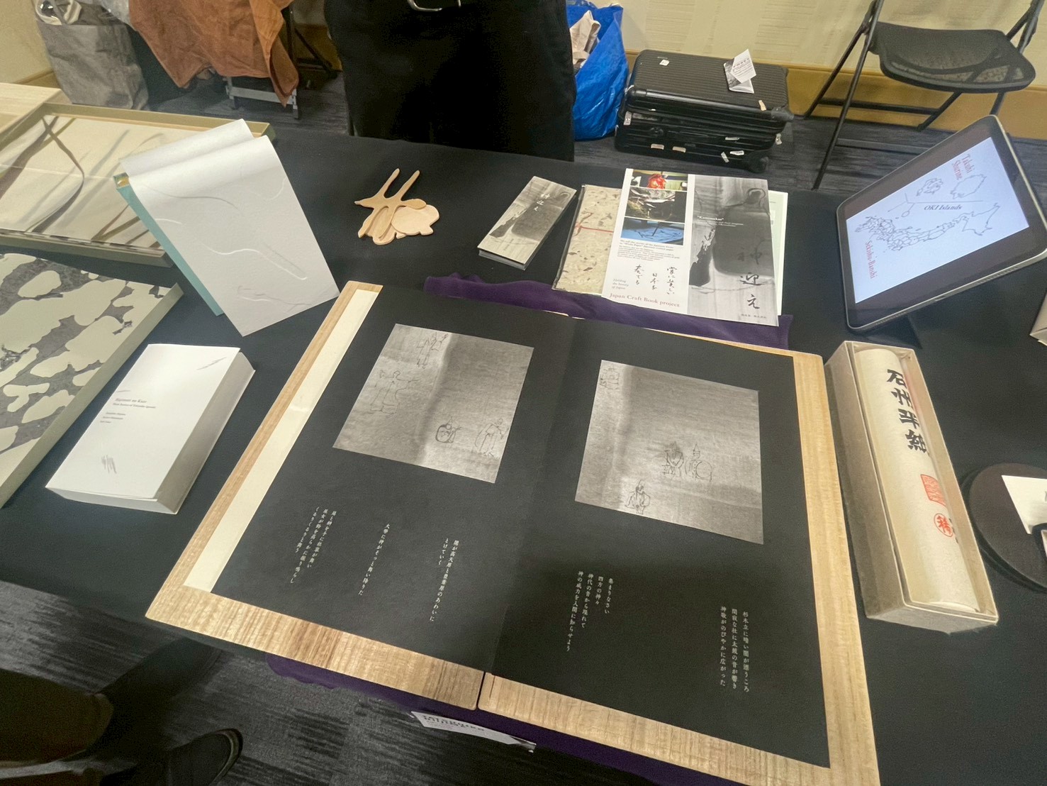 今回は、『神迎え』の造本を担当してくださった、有限会社篠原紙工、造本家・新島龍彦さんのご縁から、JAPANブースの1作品として展示が実現しました。
