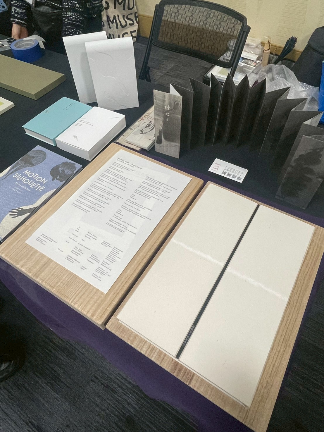 今回は、『神迎え』の造本を担当してくださった、有限会社篠原紙工、造本家・新島龍彦さんのご縁から、JAPANブースの1作品として展示が実現しました。